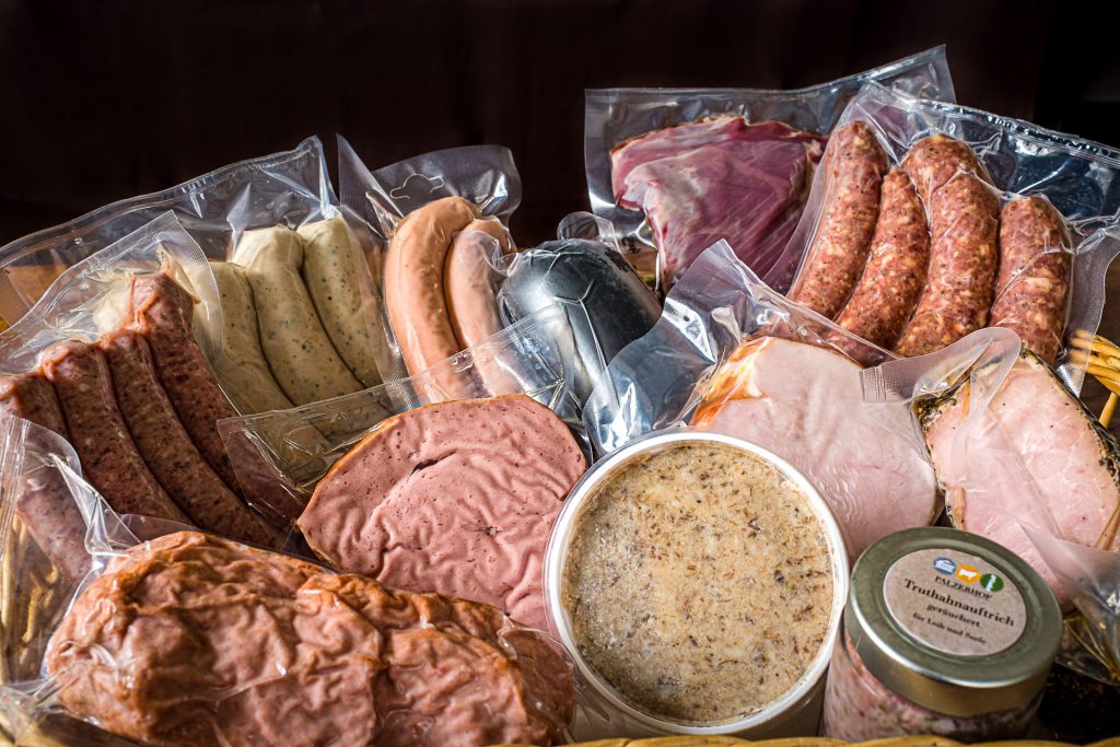 Kühlvitrine mit frischen Wurst- und Fleischwaren vom elterlichen Palzerhof