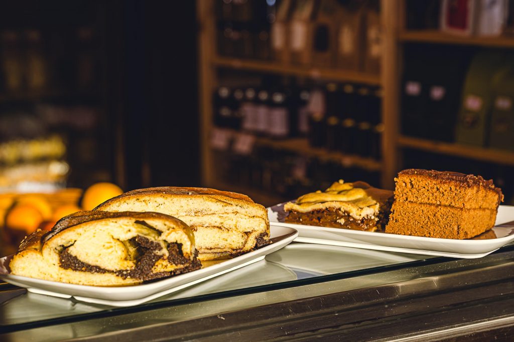 Regionale Produkte, frisch gebackene Mehlspeisen und Kuchen